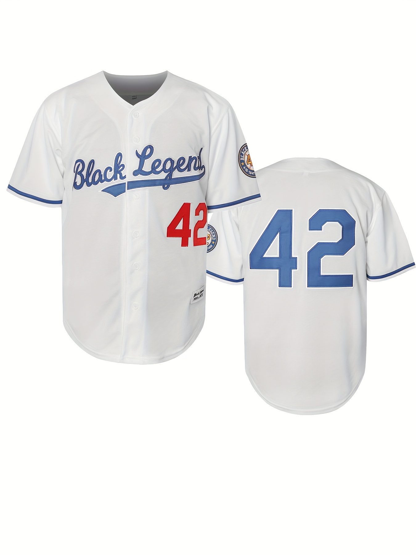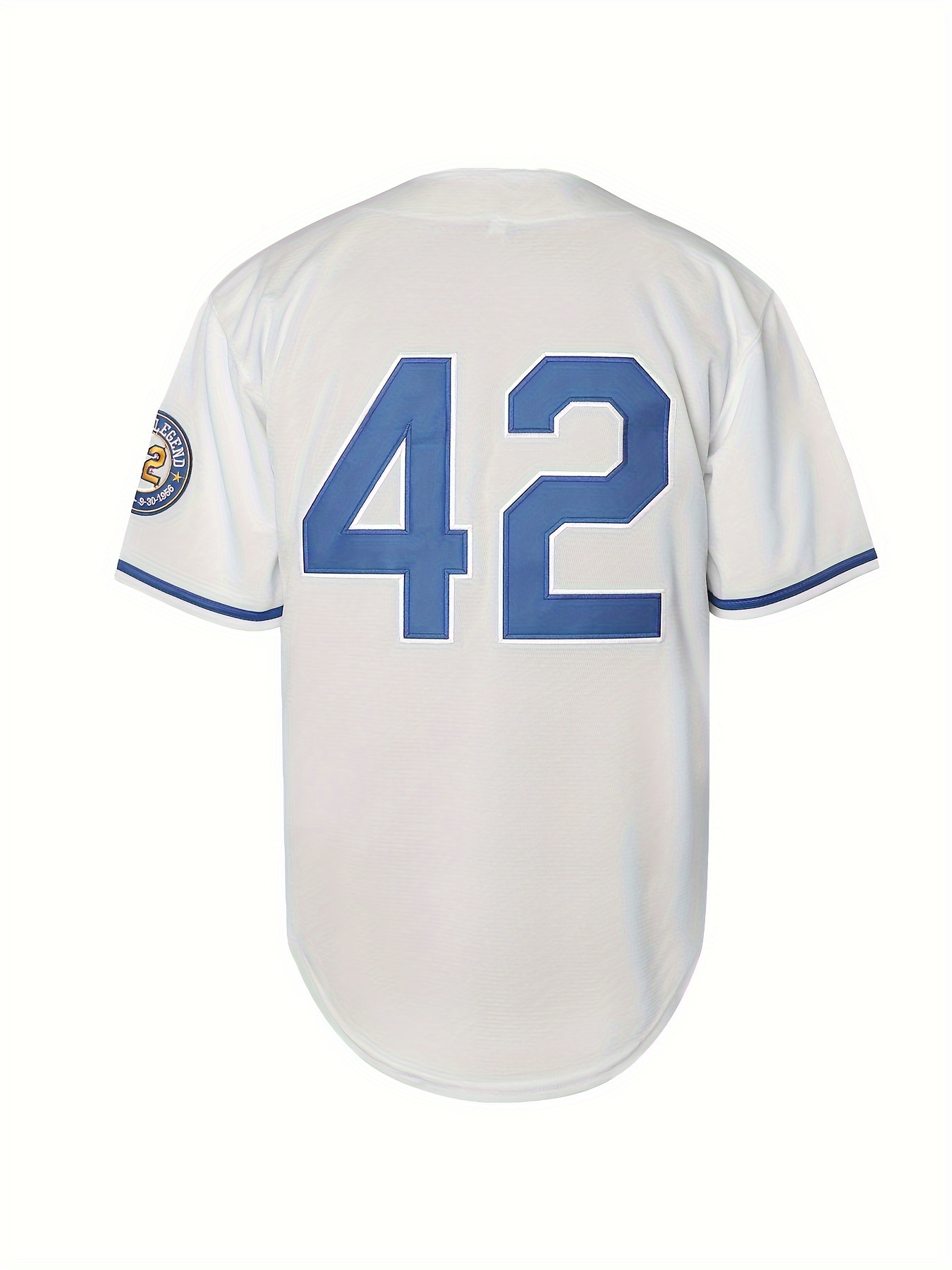 #42 Men's Retro Letter Embroidery Design Short Sleeve V-neck Breathable Button Up Shirt, Men's Summer Loose Baseball Jersey