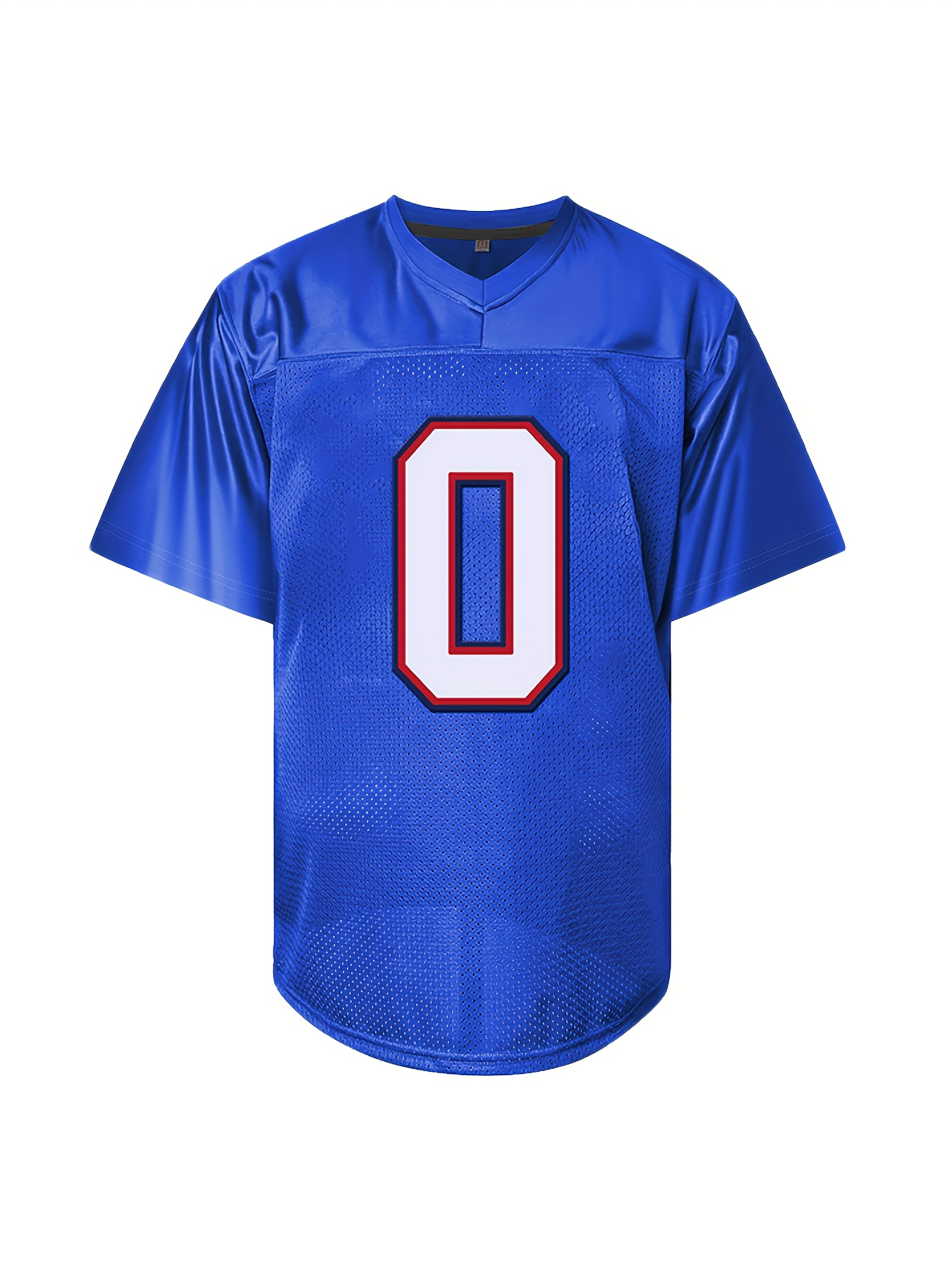 Men's #0 Performance Jersey, Breathable Polyester Sports Shirt, V-Neck Short Sleeve, Embroidered Athletic Top for Casual, Running, Training & Outdoor Activities - All Season Wear