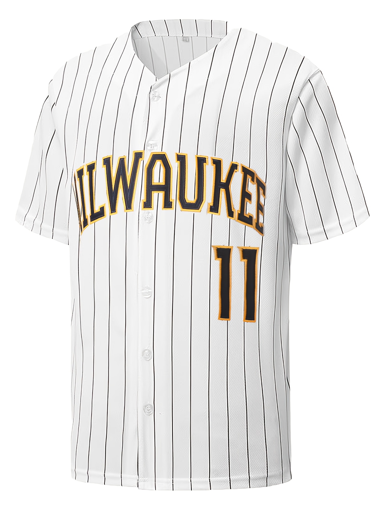 Men'S #11 Embroidered Striped Baseball Jersey - V-Neck, Button-Up, Breathable Polyester - Perfect for Sports & Outdoor Activities