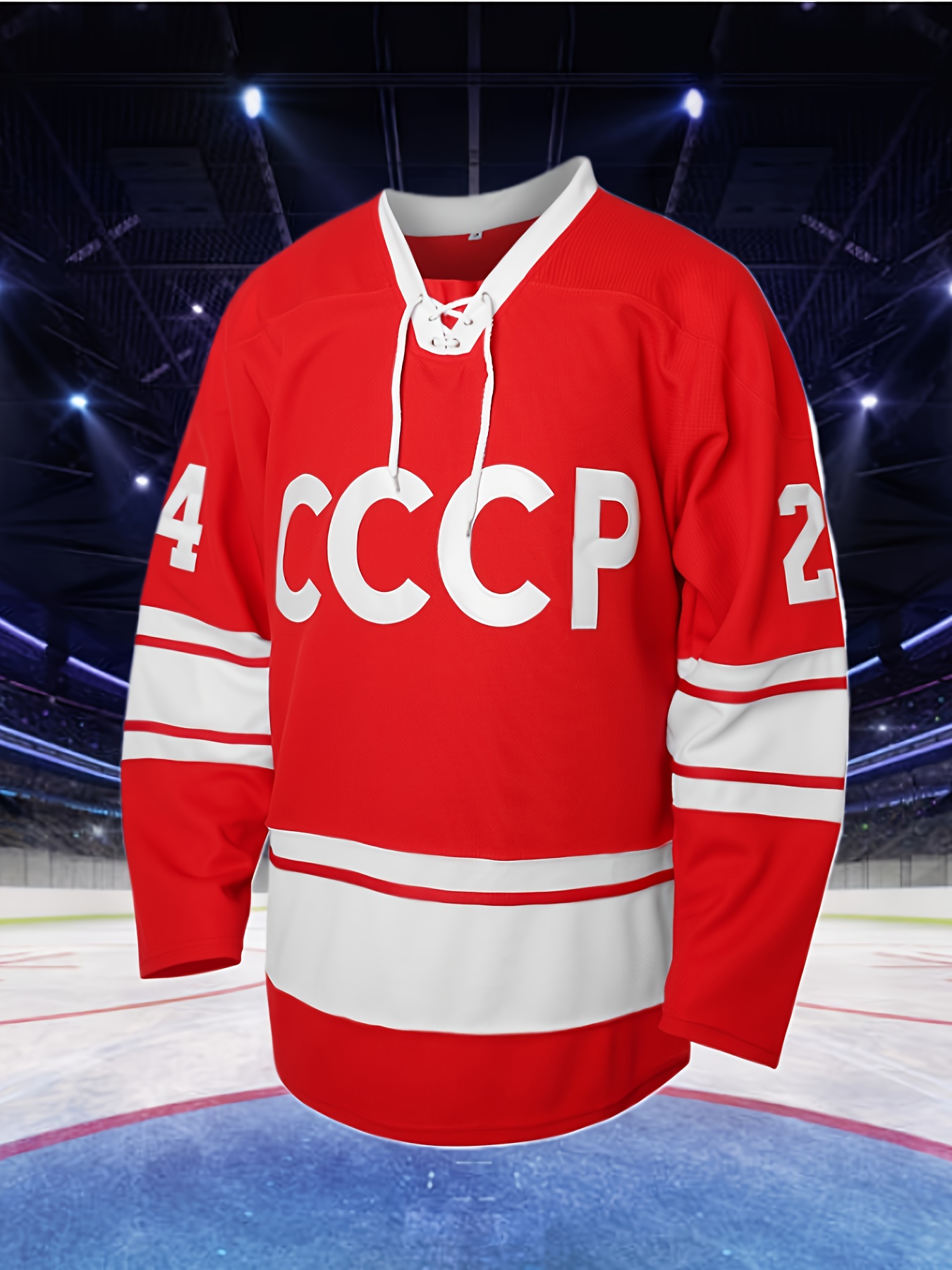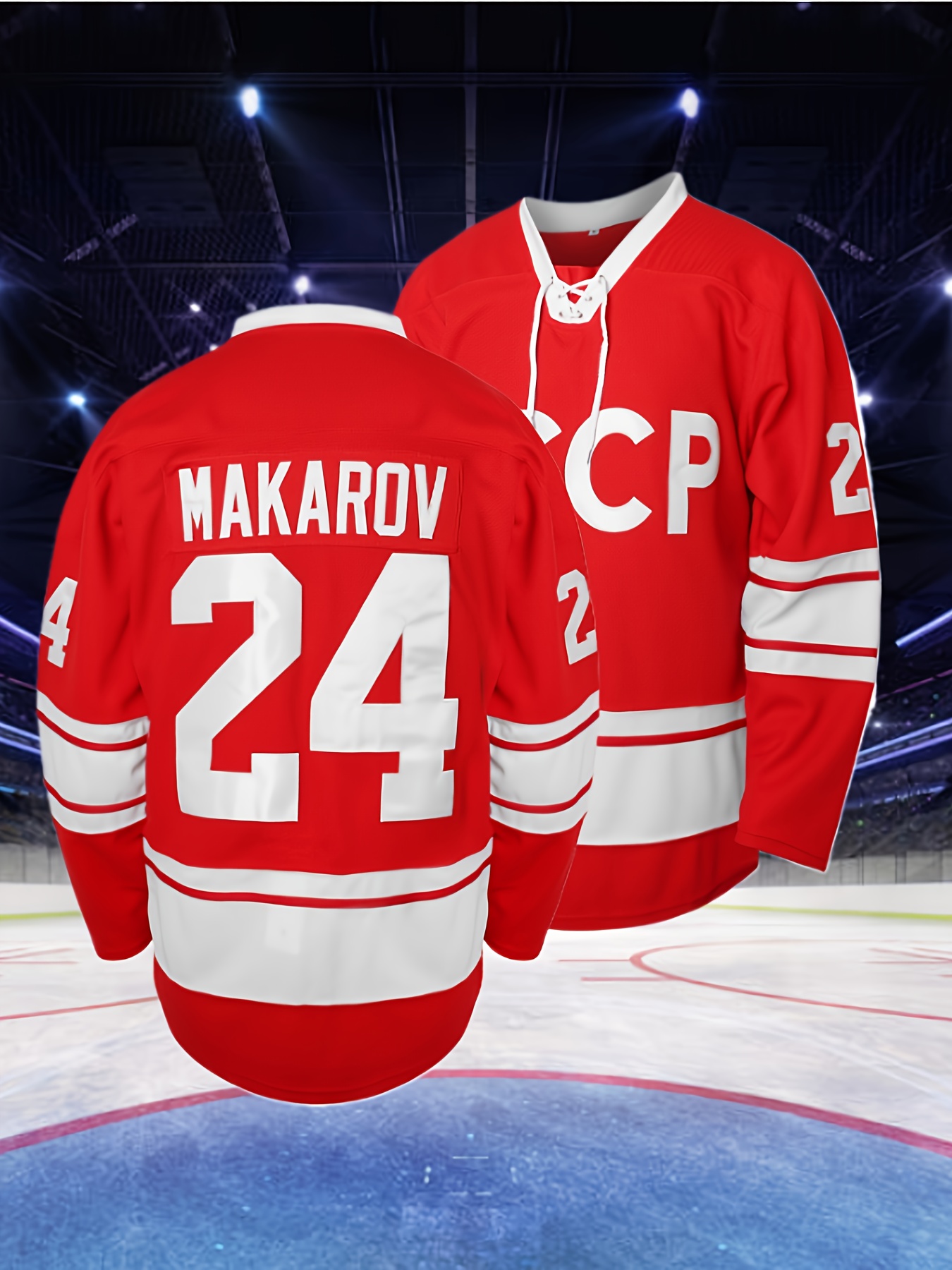 Men's #24 " Makarov " Red Ice Hockey Jersey - V-Neck, Long Sleeves, Polyester, Striped Accents - Perfect for Team Sports & Casual Wear, Machine Washable, Sizes S-3XL, Outdoor Activities| Detailing|Polyester Fabric