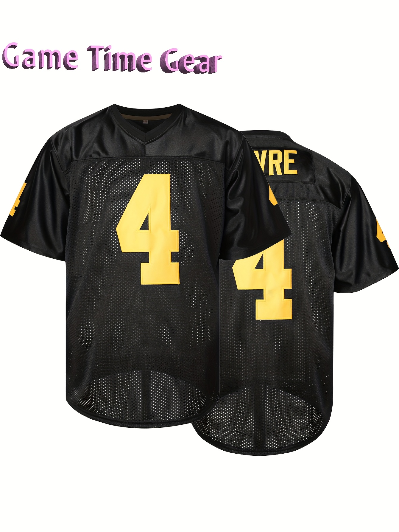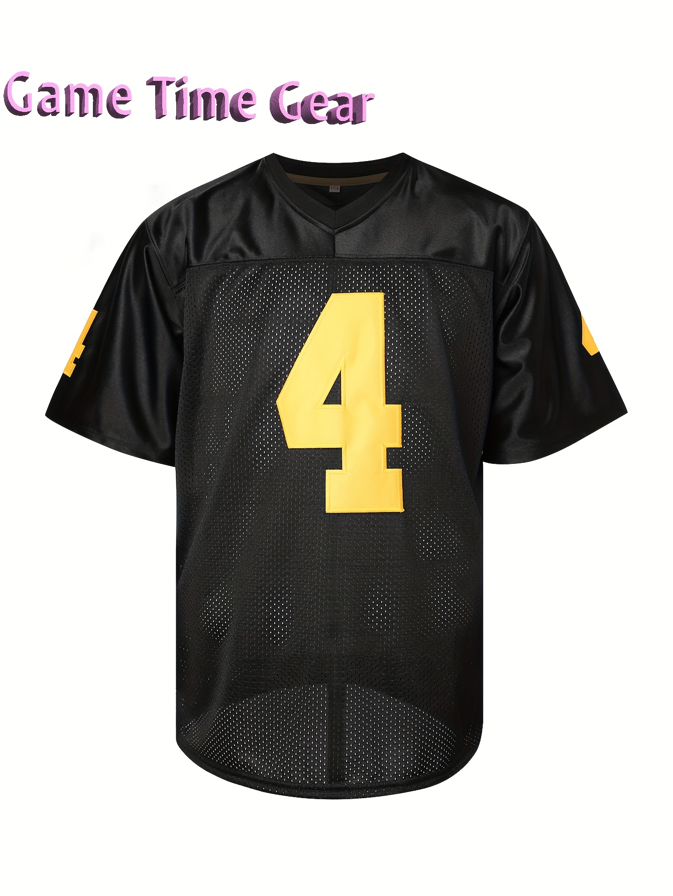 Men's #4 Embroidered Football Jersey - Breathable V-Neck, Casual Sports Shirt for Outdoor Activities & Parties, Black with Yellow Accents, Sizes S-XXXL
