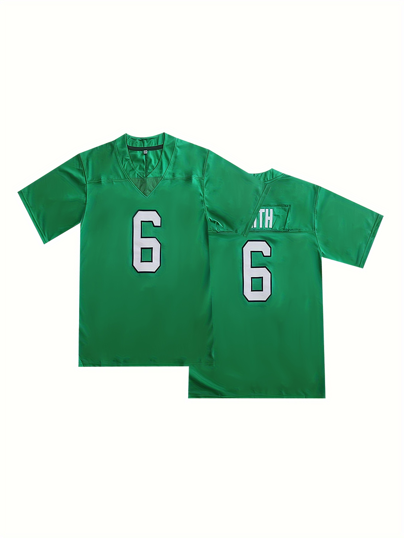 Men's #6 Green Breathable Rugby Jersey - Embroidered V-Neck Short Sleeve, Loose Fit Polyester Shirt for Training, Casual & Outdoor Wear, Machine Washable, All-Season Comfort, Sports Training Gear, Embroidered Detailing
