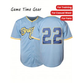 Men'S #22 Embroidered Baseball Jersey, Polyester V-Neck Sports Jersey, Breathable, Comfort Fit, with Button Closure, for Casual, Training, Hiking, Cycling, Fishing, Team Sports, Spring/Summer/Fall