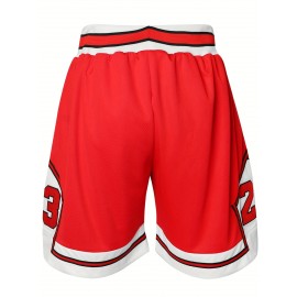 Men's #23 Embroidered Basketball Shorts - Breathable Polyester, Red & White Design, Elastic Waistband with Drawstring, Machine Washable, Perfect for Sports, Outdoor Activities & Casual Wear