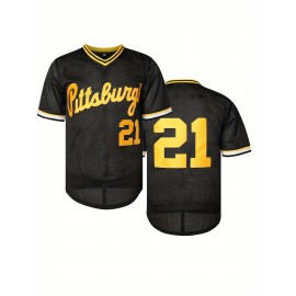 Men'S #21 Black Baseball Jersey - V-Neck, Polyester, Machine Washable - Perfect for Sports & Casual Wear