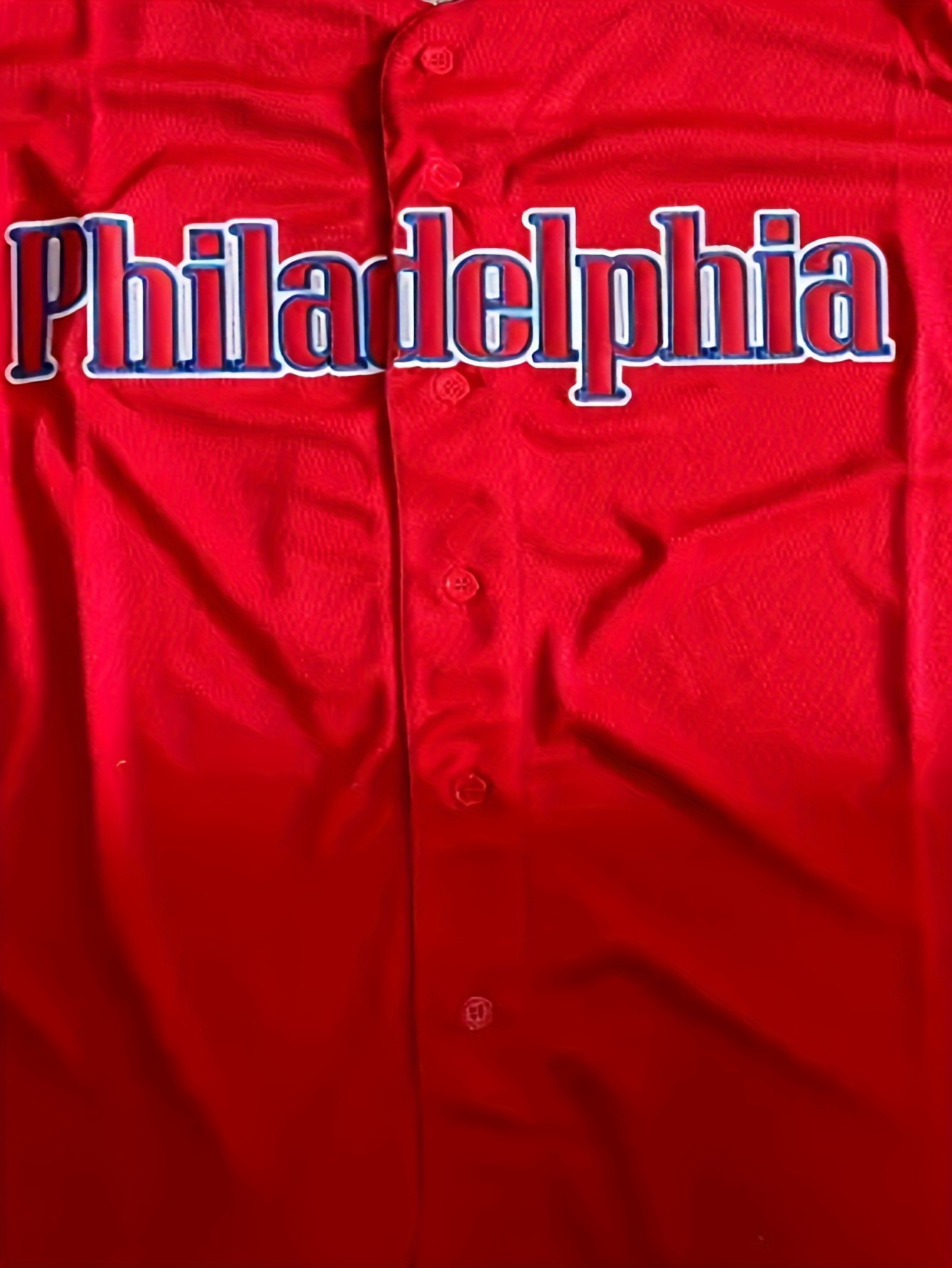 Men'S Retro PHILADELPHIA #3 Embroidery Design Short Sleeve V-neck Loose Button Up Shirt, Men'S Summer Baseball Jersey